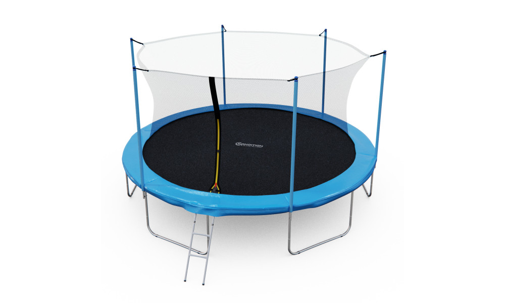 Каркасный батут с внутренней сеткой DFC серии Kondition размером 15 футов станет центром внимания для всех членов семьи и друзей! Одним из главных преимуществ данного батута является его прочная и надежная защитная сетка, которая обеспечивает безопасность. Её высота составляет 180 сантиметров, что позволяет не беспокоиться о возможности выпасть за пределы батута. Таким образом, даже самые маленькие гости смогут наслаждаться прыжками без страха и с полным комфортом. Лестница для батута служит не только для удобства входа и выхода, но и для обеспечения безопасности. С ее помощью можно легко забраться на батут и спуститься с него, не рискуя упасть и получить травму. Каркасная рама батута изготовлена из высокопрочной стали, способной выдерживать большие нагрузки и гарантировать долгий срок службы даже при интенсивном использовании. Прыжковое полотно выполнено из качественного полипропилена, устойчивого к ультрафиолетовому излучению, что делает его идеальным выбором для использования на открытом воздухе. На этом батуте установлено 72 надежные пружины, которые обеспечивают оптимальную жесткость и позволяют прыгать с большой высоты без риска травмы. Пружины диаметром 22 и длиной 165 миллиметров, обеспечивают плавный и мягкий прыжок.
